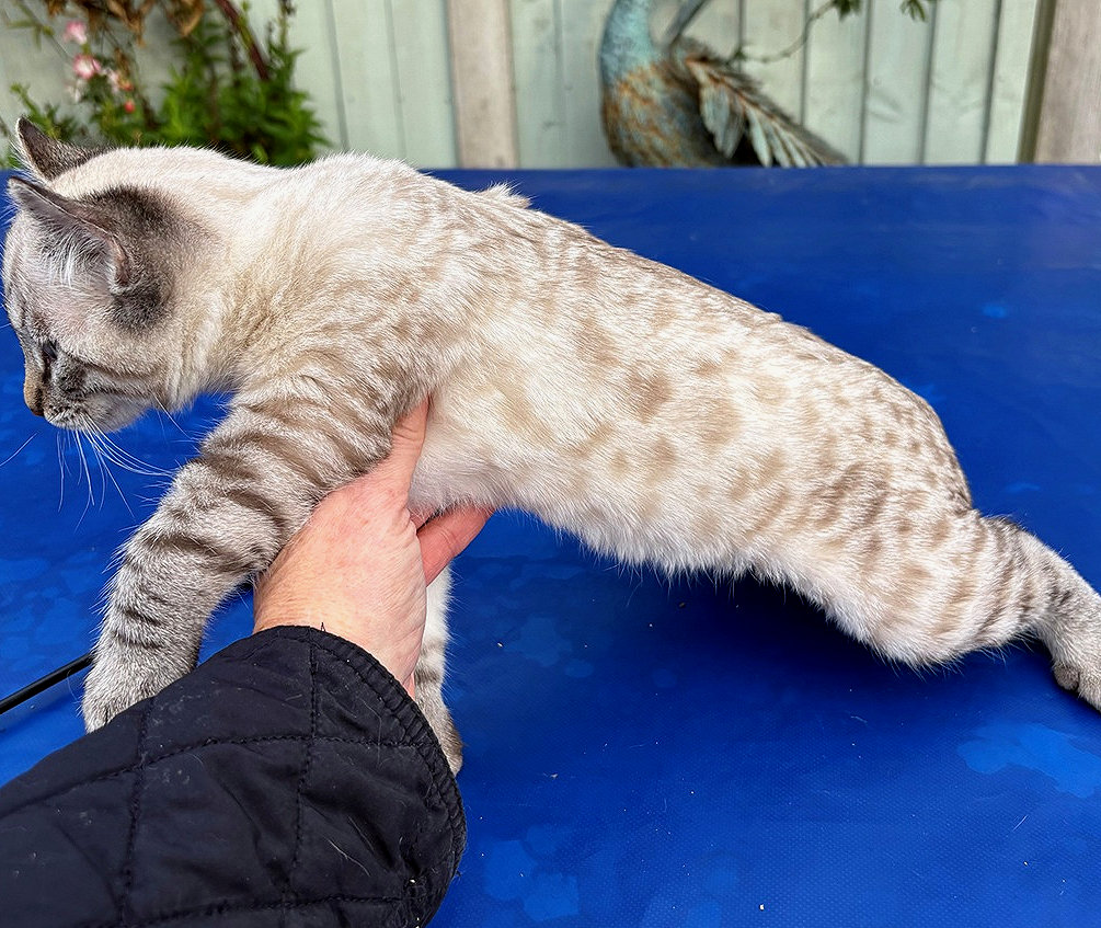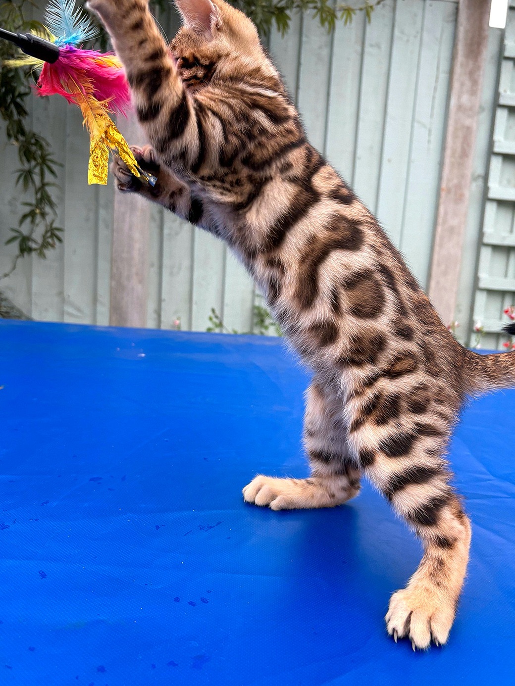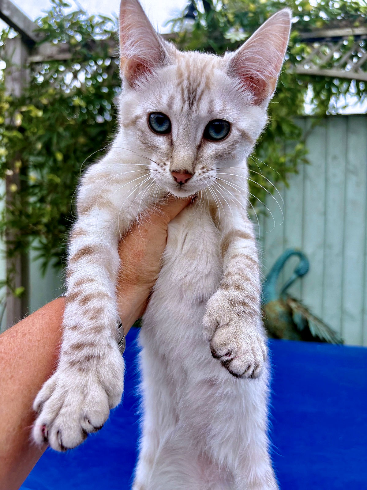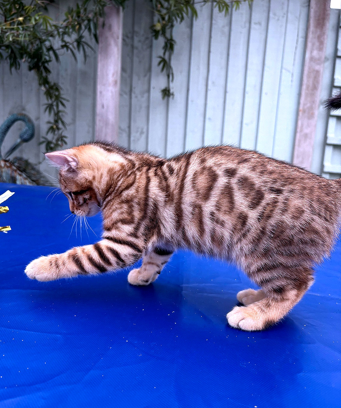 There is so much I could say about this amazing boy, he is the best Keetso I have ever produced. He is a polydactyl curled eared snow leopard rosetted male. He has a gorgeous wild looking head. big polydactyl feet, lovely curled ears and beautiful markings and he will become even more spectacular as he grows into an adult. Fabulous loving personality and bags of character. A boy of this quality is extremely rare..reserved for Claire and familyT