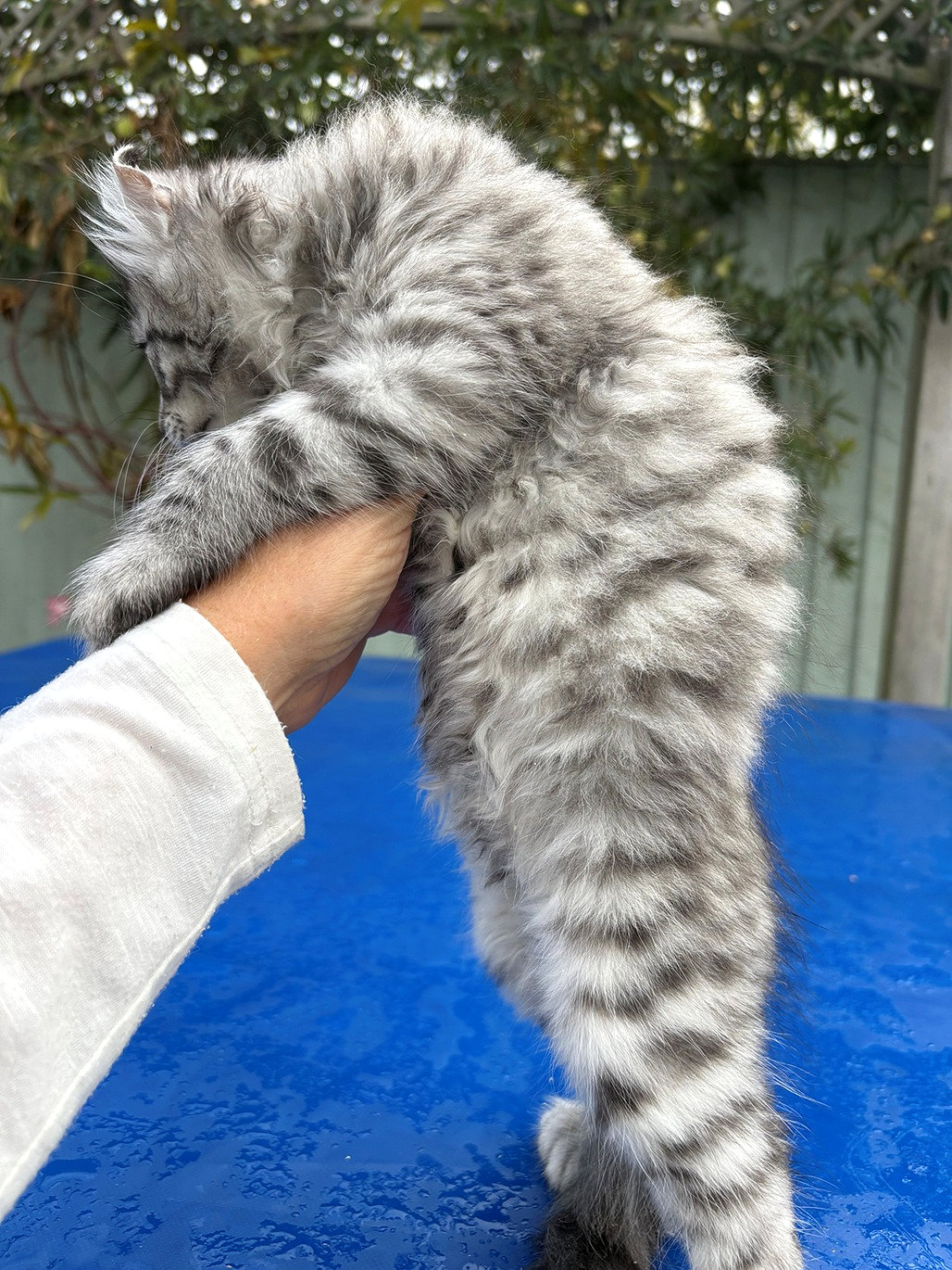 Breath taking rare curled eared longhair polydactyl silver Keetso female